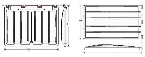 Dimensions of lids on the detail pages of the website are always shown as “Hinge Hole Centre to Front” (Length or L) and Overall Width of Lid” (W). In the case of Side Hinged Lids and Doors, this may appear pictorially wrong but allows for consistency in measuring.